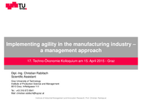 Implementing agility in the manufacturing industry – a management approach 17. Techno-Ökonomie Kolloquium am 15. April 2015 - Graz Dipl.-Ing. Christian Rabitsch Scientific Assistant Graz University…