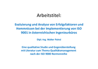 Arbeitstitel: Evaluierung und Analyse von Erfolgsfaktoren und Hemmnissen bei der Implementierung von ISO 9001 in österreichischen Ingenieurbüros Dipl.-Ing. Walter Painsi Eine qualitative Studie und…