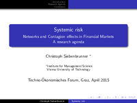 Introduction Research Agenda Conclusion Systemic risk Networks and Contagion effects in Financial Markets A research agenda Christoph Siebenbrunner ∗ ∗ Institute for Management Science Vienna…