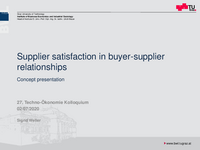 Graz University of Technology Institute of Business Economics and Industrial Sociology Head of Institute O. Univ.-Prof. Dipl.-Ing. Dr. techn. Ulrich Bauer Supplier satisfaction in buyer-supplier…