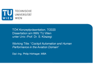 TÖK Konzeptpräsentation, 7/2020 Dissertation am IMW, TU Wien unter Univ.-Prof. Dr. S. Köszegi Working Title: “Cockpit Automation and Human Performance in the Aviation Domain” Dipl.-Ing. Philip…