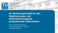 Ein Bewertungsmodell für den Digitalisierungs- und Automatisierungsgrad produzierender Unternehmen Dipl.-Ing. Andreas Schumacher Techno-Ökonomieforum 07.02.2020 Abschlusspräsentation Inhalt •…