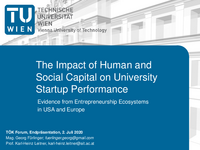 The Impact of Human and Social Capital on University Startup Performance Evidence from Entrepreneurship Ecosystems in USA and Europe TÖK Forum, Endpräsentation, 2. Juli 2020 Mag. Georg Fürlinger;…