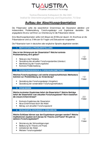 Techno-Ökonomie Kolloquium 03. Mai 2022 Institut für Unternehmungsführung und Organisation, TU Graz Aufbau der Abschlusspräsentation Die Präsentation sollte die wesentlichen Erkenntnisse der…
